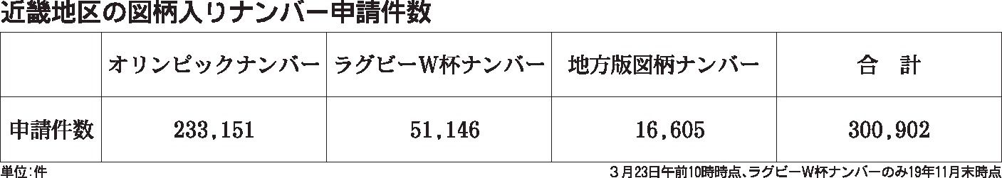 近畿地区の「特別仕様ナンバープレート(図柄入りナンバー)」の総申請件数が30万件を超えた。全国自動車標板協議会(東京都文京区)のまとめによると、23日午前10時時点での近畿の図柄入りナンバー3種の総申請件数は30万902件に達した。関東地...