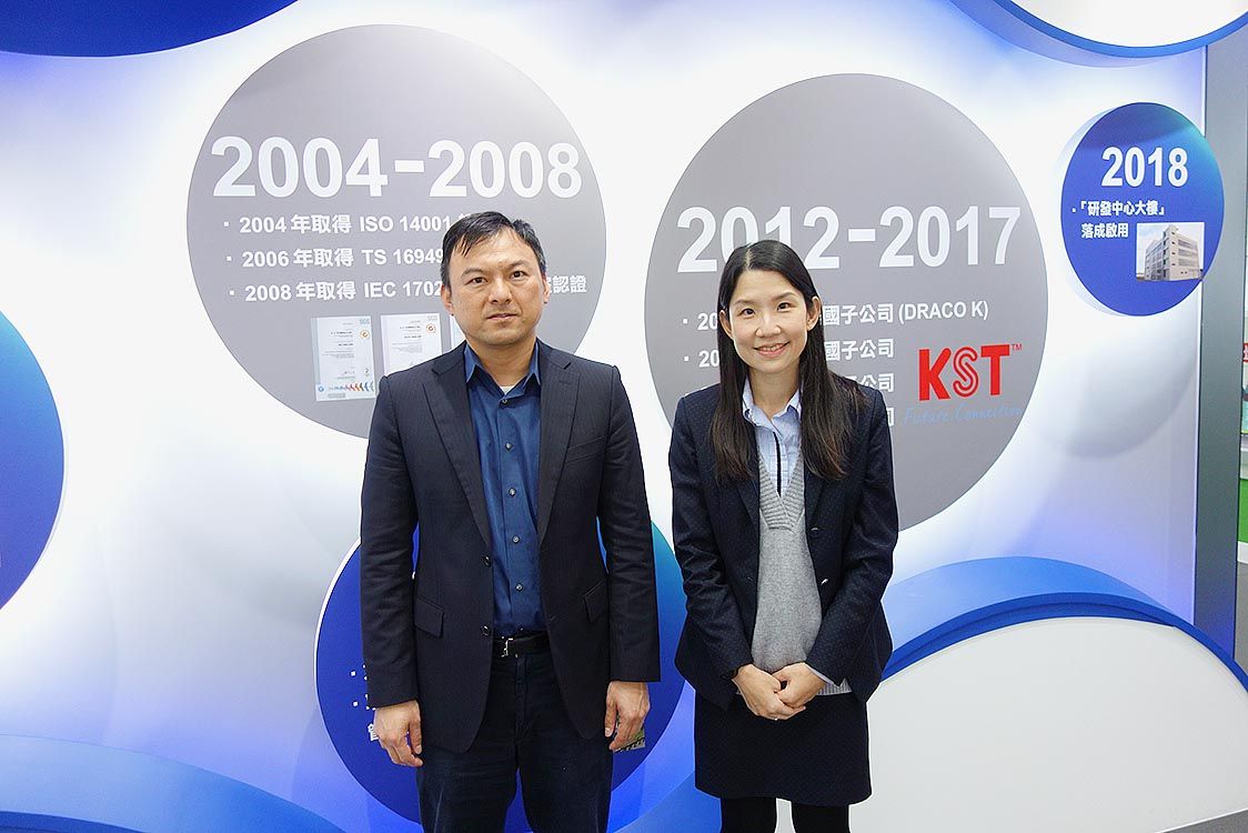 KSターミナルズ(健和興端子、鄭景壬総経理)は、1973年に設立。新エネルギー、EV、鉄道輸送、通信ネットワークなど多くの産業分野で使われる端子、コネクター製品の製造を行う。設立当初は端子のOEM事業からスタート。品質を第一とした誠実な事業への取り組みで、端子とコネクター市場で実績を築いてきた。2018年には本社隣地にR&Dセンターを設置。一階にあるショールームには、産業分野別にさまざまな端子やコネクターが展示され、設立からの発展の一端をうかがい知ることができる。