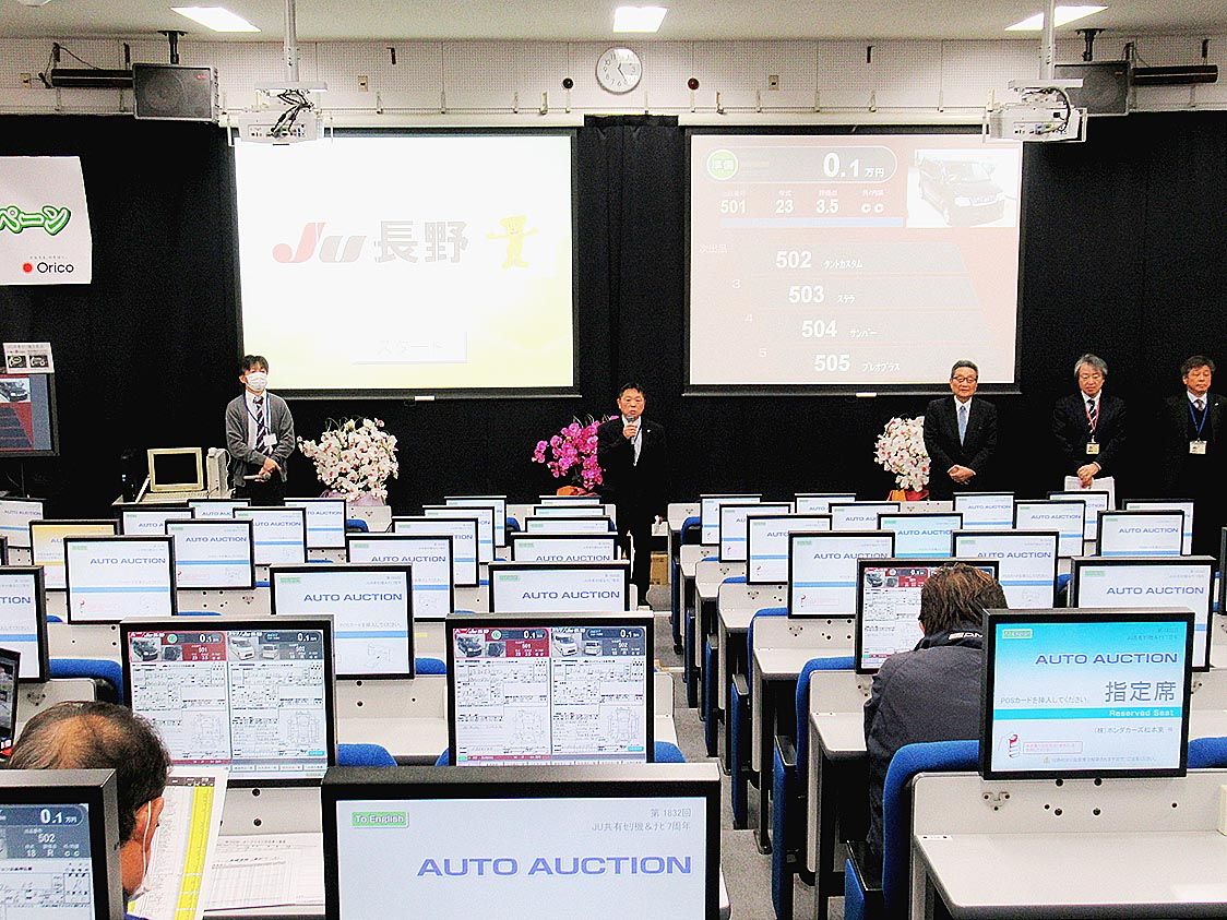 【長野】長野県中古自動車販売商工組合(JU長野、塚田長志理事長)は、中古車オークション(AA)「JU共有セリ機&JUナビ接続7周年記念」を開催した=写真。その結果、出品571台、成約252台、成約率44・1%と前回を上回った。台当たり単価...