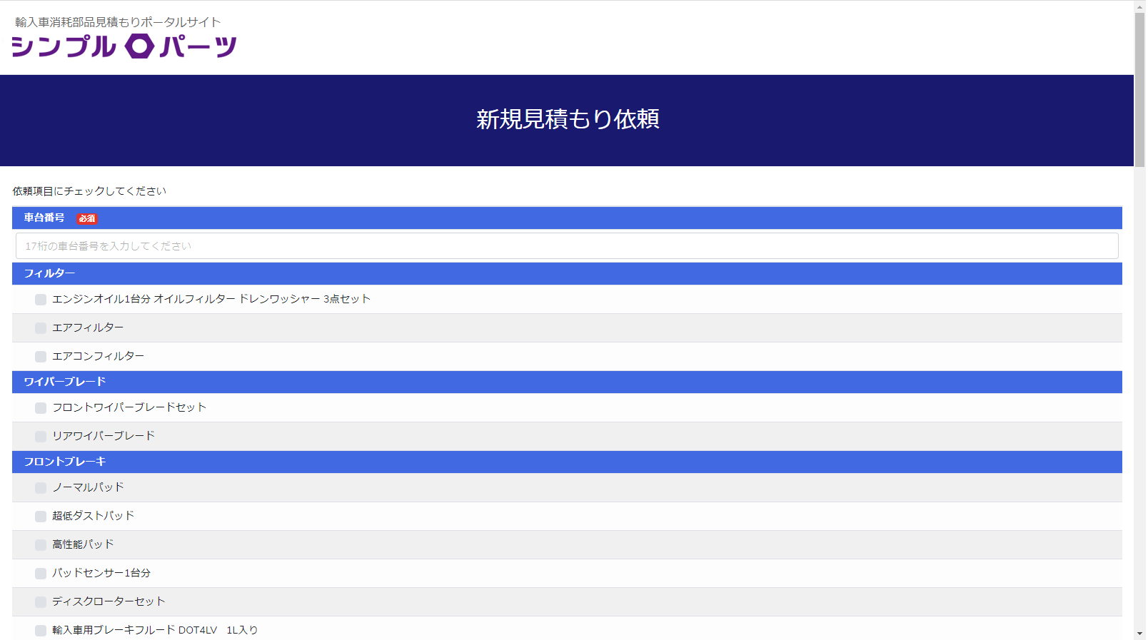 メインターゲットは整備事業者や自動車販売業者とし、登録をすれば無償で利用ができる。補修部品を必要としている車両の車体番号を入力、求める部品を選択すると見積もりが依頼できる仕組み。該当品には純正・優良部品を明記するなど選びやすさも追求し、ポータルサイトの中で見積もりから発注までを完結させた。これにより輸入車部品の入手に必要な手間を大幅に省き、受発注を簡略に行えるようになる。今後、既存取引先より導入を広め、新規需要も取り込み、利用事業者の事業効率化ツールとしてアピールしていく。