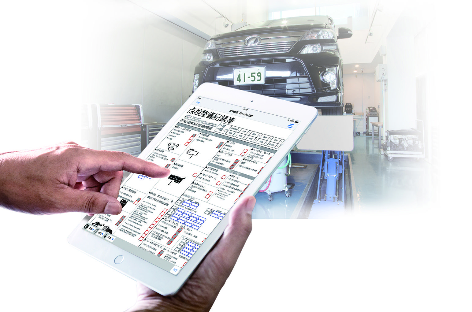 「e―整備」(iOS、Android対応)は、スマートフォンやタブレット端末などを使った点検整備記録の簡単な作成と印刷が可能だ。12カ月・24カ月定期点検や日常点検の記録を端末の画面に入力する。また、トレサスとの併用により、ホイールナット締付値をはじめタイヤ溝やブレーキパッド値などを点検記録簿に自動入力できる。手書きやパソコン入力、スキャンなどの作業が省け、人材不足の解消や労働時間の短縮につながる。使用料はタイヤ溝や日常点検は無料で、12カ月・24カ月点検の記録が月額500円となっている。