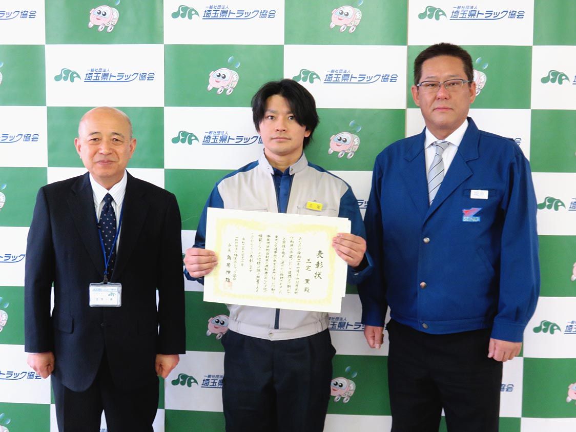【さいたま】埼玉県トラック協会(鳥居伸雄会長)は3月30日、関東西濃運輸東松山支店(境原総支店長)に勤務する三宅薫さんを交通事故未然防止の功労を称え、表彰した。同協会の吉澤一寿常務理事らが三宅さんの勤務先を訪問し、表彰状と記念品を贈った。...
