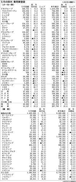 【5月の欧州 乗用車登録(メーカー別/国別)】