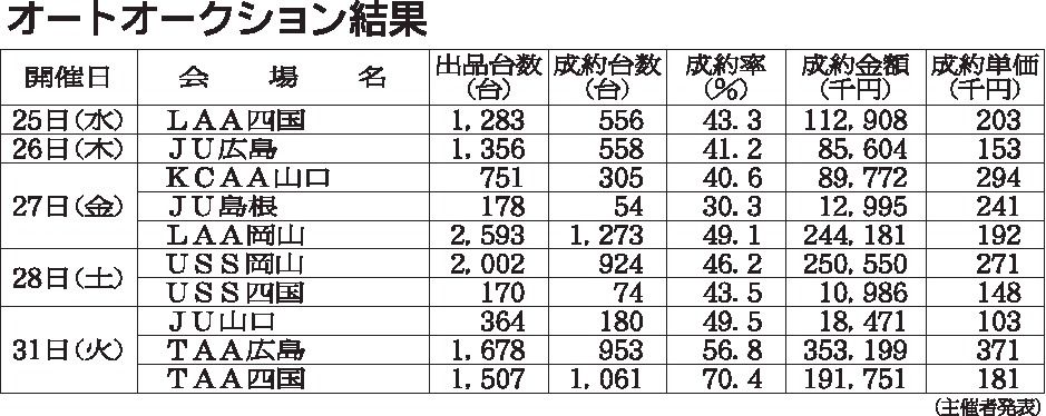 〈オートオークション結果〉