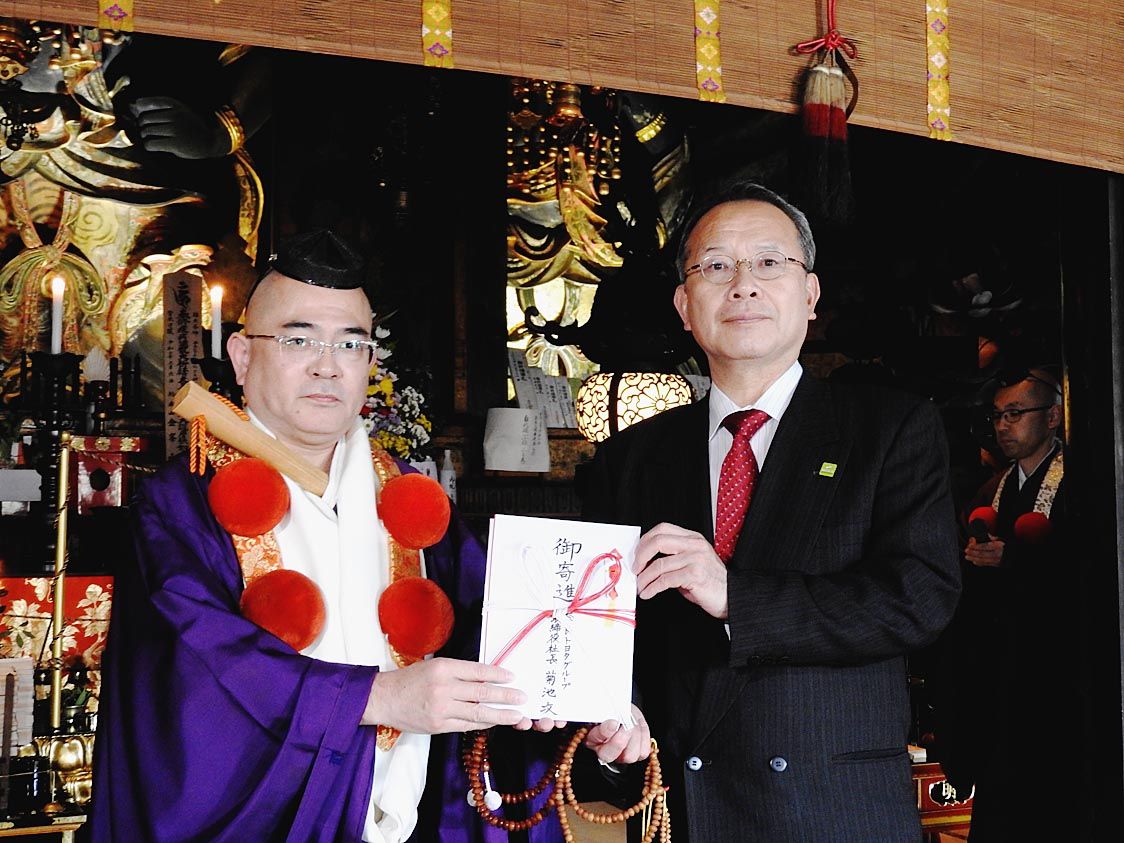 【奈良】奈良トヨタ(菊池攻社長)グループは3月31日、金峯山寺(吉野町)で「国宝仁王門大修理事業」の協賛贈呈式を開いた。500年以上の歴史を持ち、世界遺産でもある歴史的建造物・仁王門の修繕費用として200万円を寄贈した。 同日、寺内の蔵王...