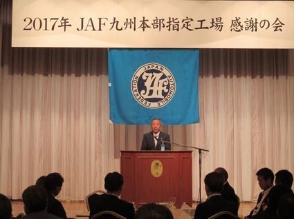 日本自動車連盟(JAF)九州本部(金野誠本部長)は19日、福岡市中央区のホテルで「2017年度 指定工場感謝の会」を開催した。昨年の会員獲得で優秀な成績を上げたほか、ロードサービス業務で貢献したJAF指定工場を表彰した。 席上、九州本部...