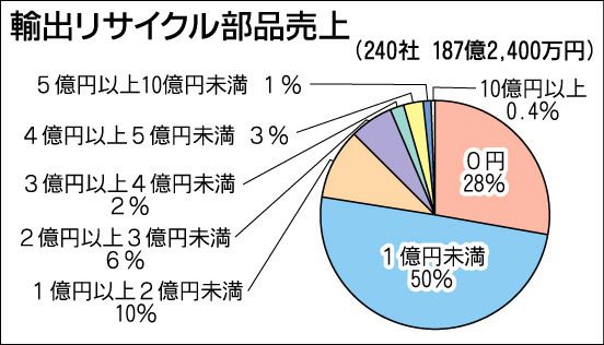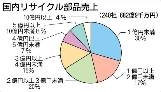 日本自動車リサイクル部品協議会(リ協、栗原裕之代表理事)は、会員事業者を対象に行った市場規模アンケートの調査結果を公表した。回答事業者合計のリサイクル部品(リユース・リビルト部品)の国内売上は682億9千万円で、1社当たりの平均売上額は前...