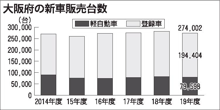大阪府の2019年度(4月~20年3月)新車販売台数(登録車と軽自動車の合計、速報値)は、前年度比2・7%減の27万4002台だった。昨年10月の消費増税による消費マインドの停滞が長期化し、年度ベースでは4年ぶりのマイナスに転じた。 上期...