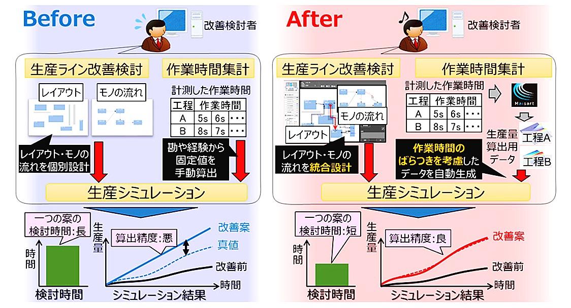 三菱電機は、生産現場の改善活動を効率化する「生産ライン改善支援技術」を開発したと発表した=写真。 生産ラインのレイアウトと製品の流れの統合設計による設計工数の削減と、同社AI(人工知能)技術「マイサート」を用いた生産量算出の高精度化によっ...