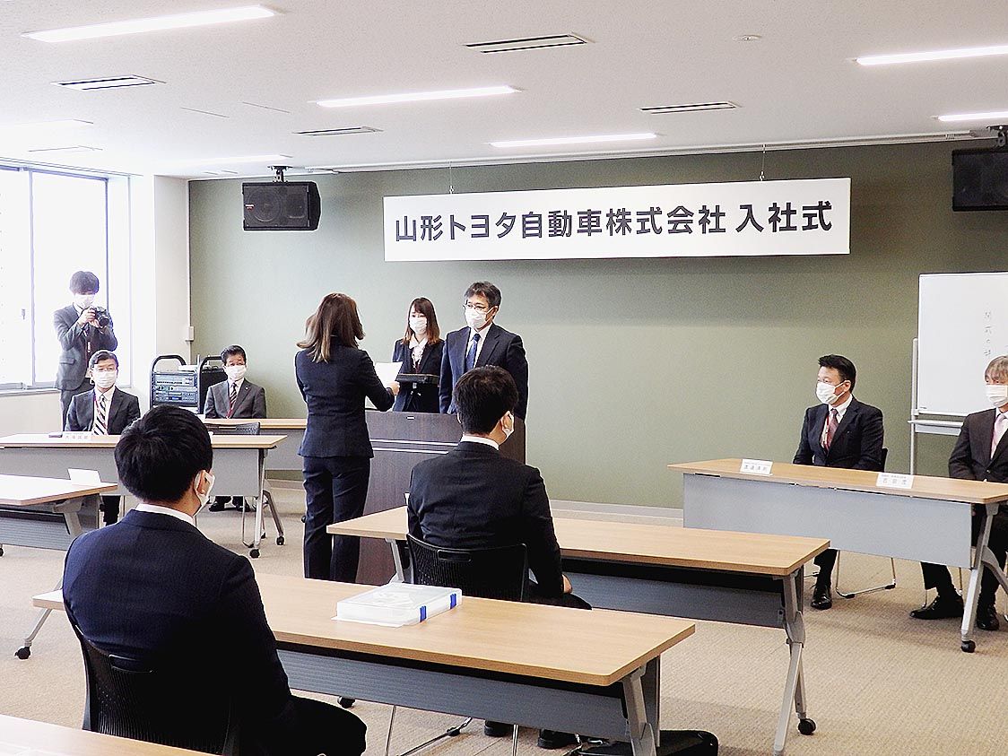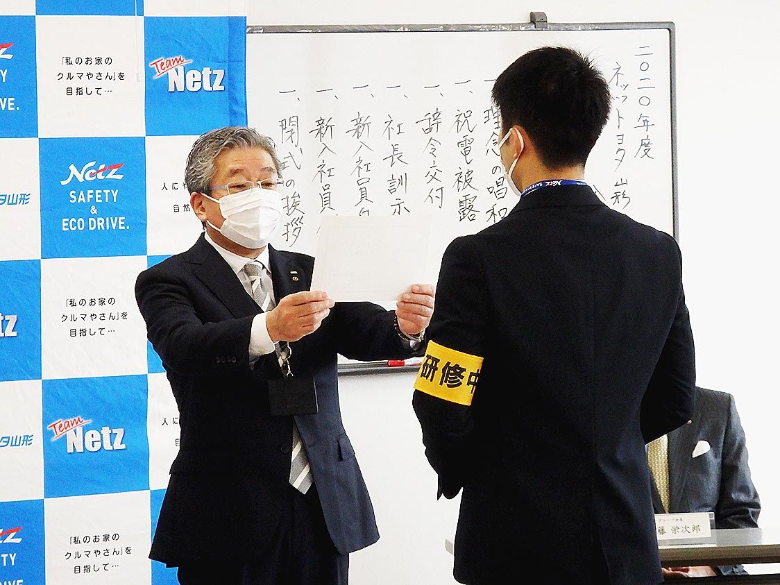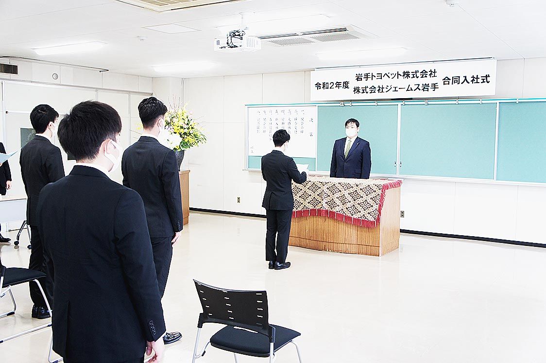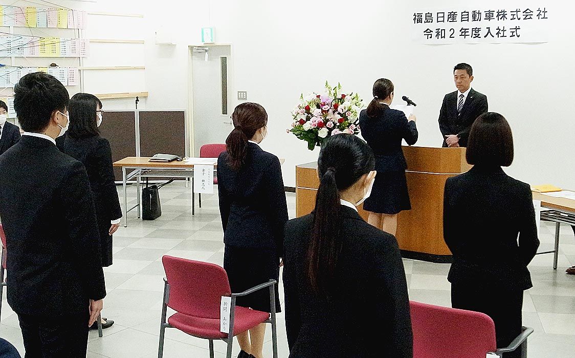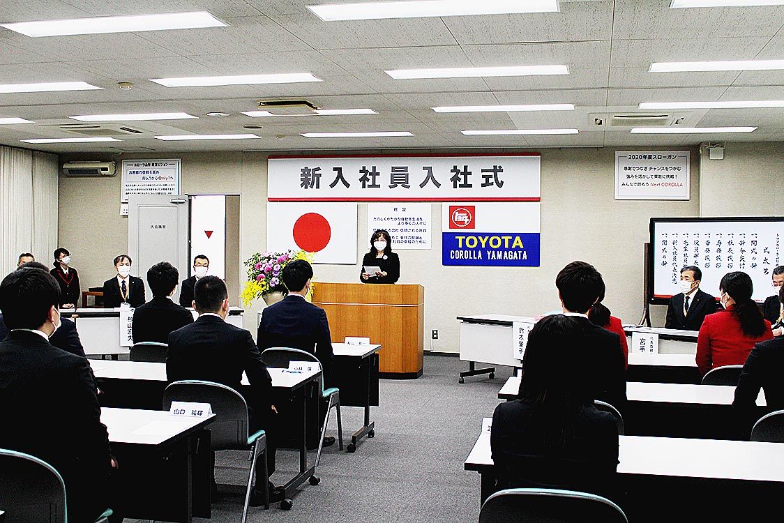新型コロナ感染拡大防止対策の下で門出を祝う 東北の自動車業界各社が入社式 失敗を恐れずチャレンジして
