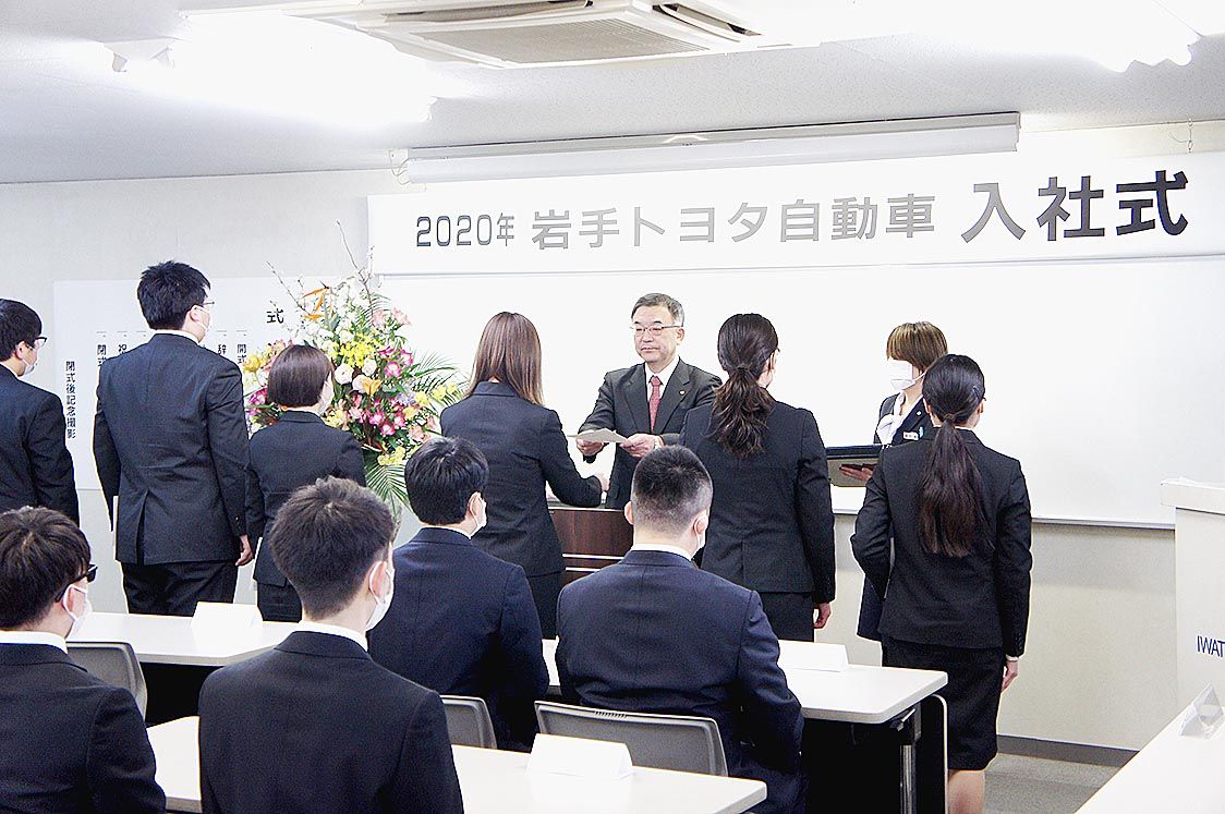 東北の自動車業界各社は、入社式を行った。新型コロナウイルス感染症が猛威を振るう状況での開催を考慮し、各社はそれぞれ規模縮小やマスク着用、消毒液の設置などを実施。徹底した感染拡大防止対策の下で新入社員の門出を祝った。 【盛岡】岩手トヨタ(小...