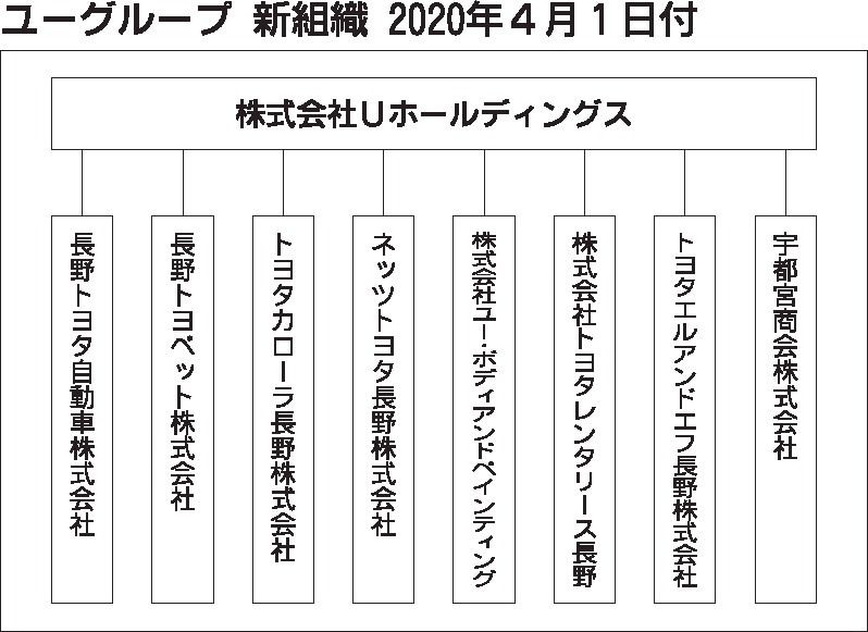【長野】ユー・グループ(宇都宮進一代表)は1日、Uホールディングスを新設した。長野トヨタ、長野トヨペット、トヨタカローラ長野、ネッツトヨタ長野など、グループ各社に対する経営指導、総務・人事・経理などの管理業務、不動産・各種システムの管理、...