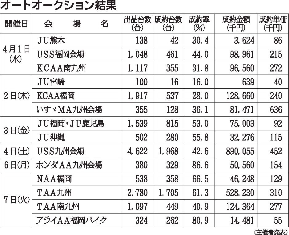 〈オートオークション結果〉