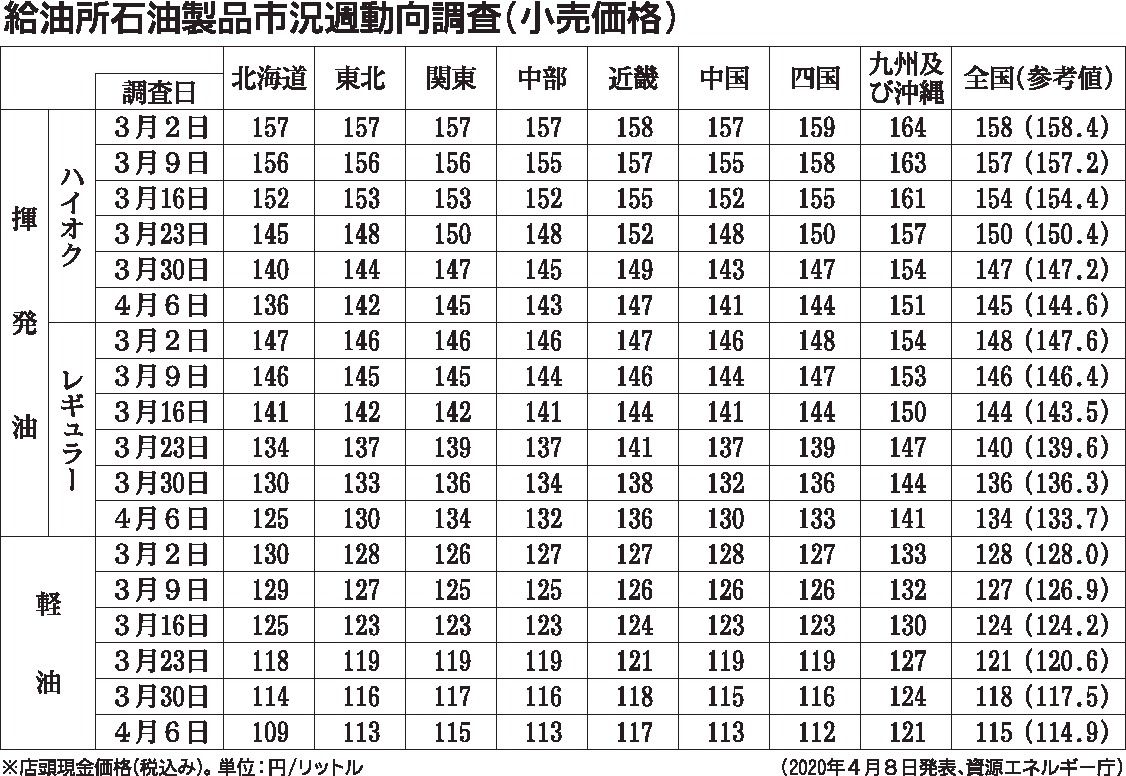 ガソリン価格、コロナ影響で4週連続全47都道府県で値下がり