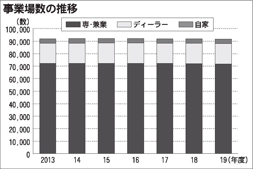 ここ数年、事業場数は全体としては一進一退を繰り返している。日本自動車整備振興会連合会(日整連、竹林武一会長)の2019年度版「自動車整備白書」によると、事業場数は前年度比0・3%減の9万1605で4年連続で減少した。このうち、兼・専業が同...
