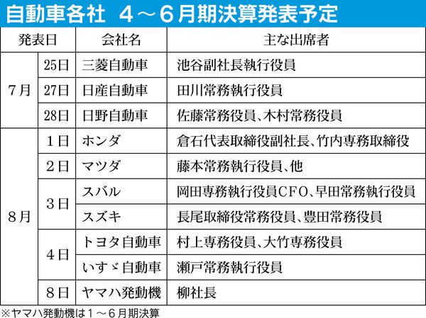 自動車メーカーの2018年3月期第1四半期(4~6月)の決算発表が25日から始まる。前年同期に比べ、やや円安に動いている為替がプラス要因になる一方、市場に減速感が出てきている米国の販売動向が注目される。...