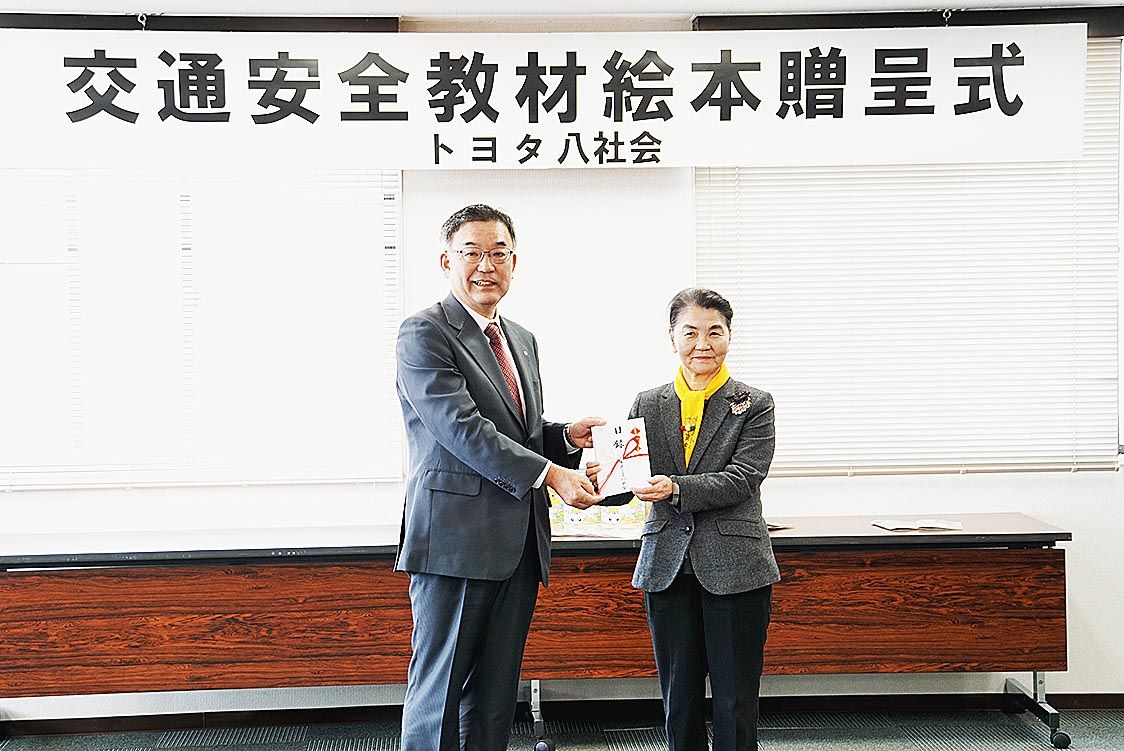 【盛岡】岩手県トヨタ8社会(会長=小林義弘・岩手トヨタ社長)は、岩手県交通安全母の会連合会(小森洋子会長)に「幼児向け交通安全教材」3万部を贈呈した。盛岡市の岩手県交通安全協会で贈呈式が開催され、小林会長から小森会長に目録が手渡された=写...