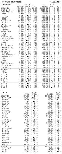 【12月の欧州 乗用車登録】
