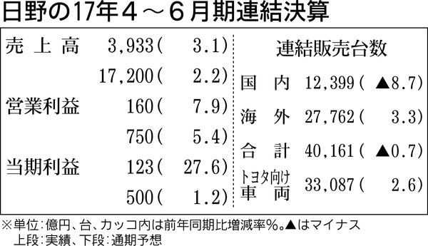 日野、2年ぶり増収増益 4~6月期 原価高騰を海外で補う