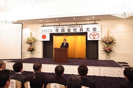 【郡山】トヨタカローラ福島(佐藤良也社長)は19日、郡山市内で「2015年年頭全社員大会」を開催、本年度の会社方針や重点施策を示したほか、昨年度に優れた実績を残した店舗表彰などを行った。同社幹部、社員など約400人が出席し、目標達成に向け...