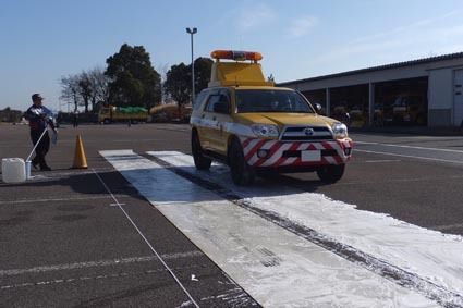 JAF岐阜、滑りやすい路面での急ブレーキ体験