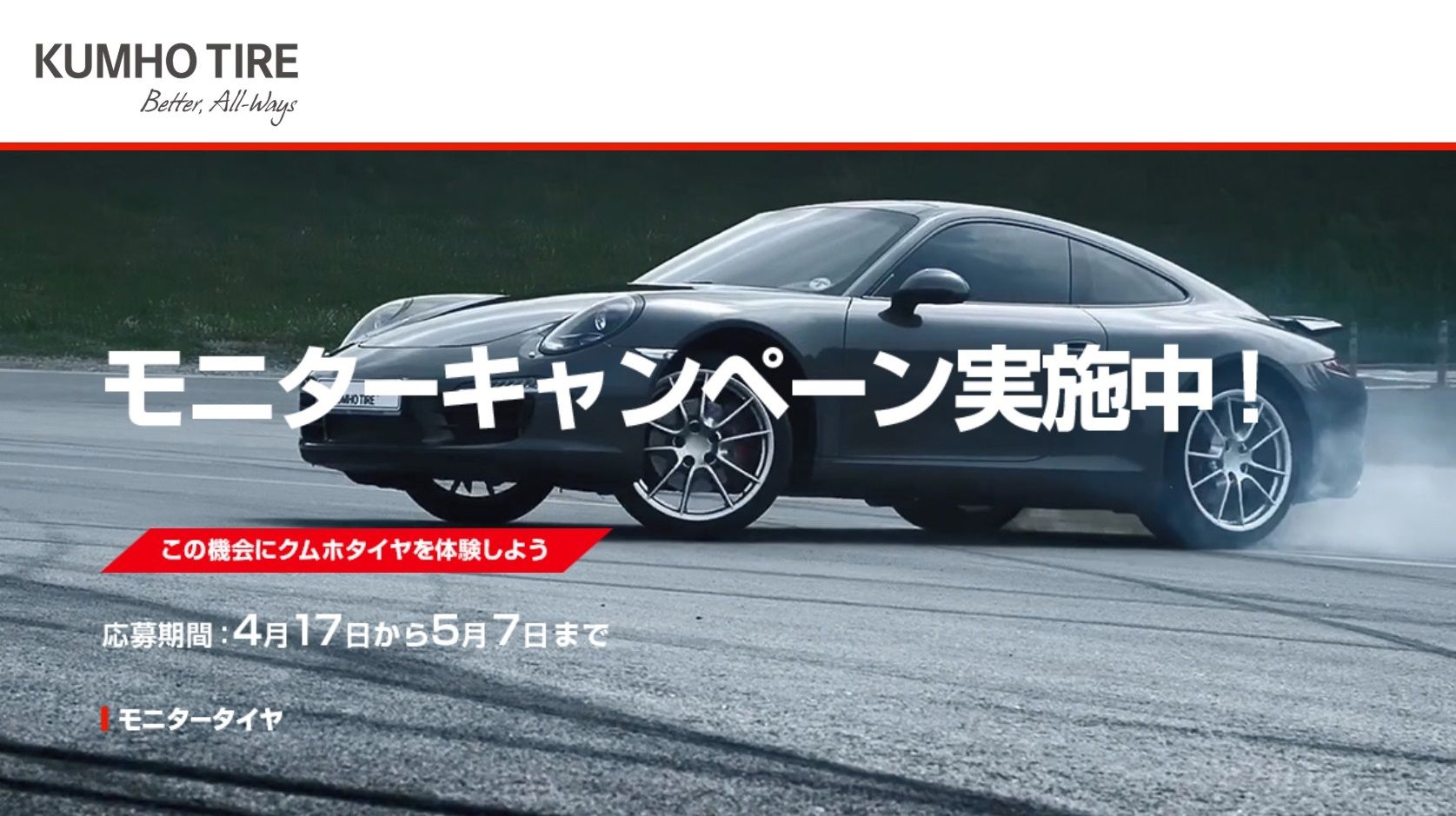 クムホ、タイヤモニターキャンペーン 4製品対象 応募5/7まで