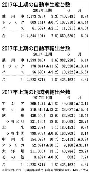 日本自動車工業会(自工会、西川廣人会長)が31日まとめた2017年上期(1~6月)の国内生産台数は、前年同期比7・8%増の484万4101台となり、3年ぶりに前年同期を上回った。新型車効果や軽自動車の燃費不正問題からの脱却により、主に国内...