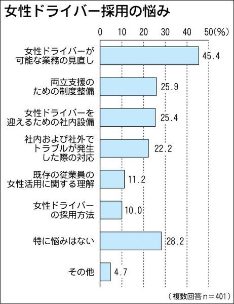 全日本トラック協会は7月25日、青年部会(山本明徹部会長)が3月にまとめた「トラック運送業界における女性雇用促進に関する実態調査」の結果を公表した。最近のドライバー不足の解消策の一つとして女性の登用が注目される中、事業者の雇用意欲は高いも...