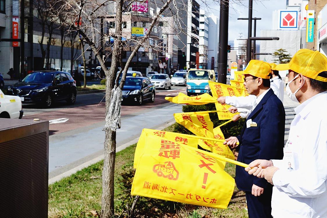 自販連札幌、20年度の第1回交通安全・人の波運動