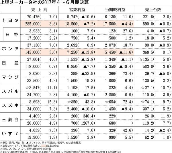 2018年3月期第1四半期(4~6月)は、売上台数や販売台数(小売り)が増加基調で推移したことに加え、為替が円安だったことが追い風になり、全社で売上高が増加した。ただ、米国での販売競争激化で販売費用が増加し、営業利益は3社が減少した。第2...