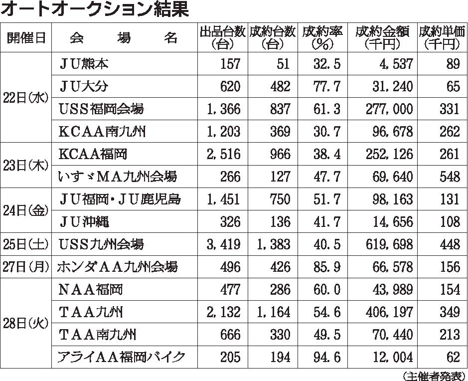 USS九州会場、2025年度AAで出品台数・成約率ともに過去最高