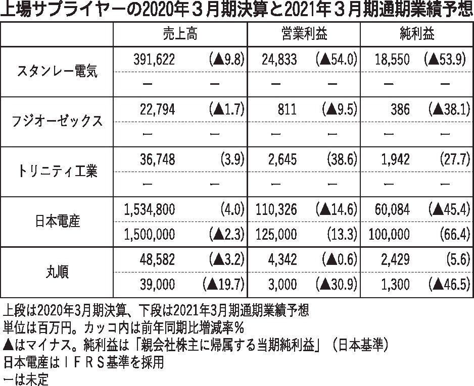 〈上場サプライヤーの2020年3期決算と2021年3月期通期業績予想〉