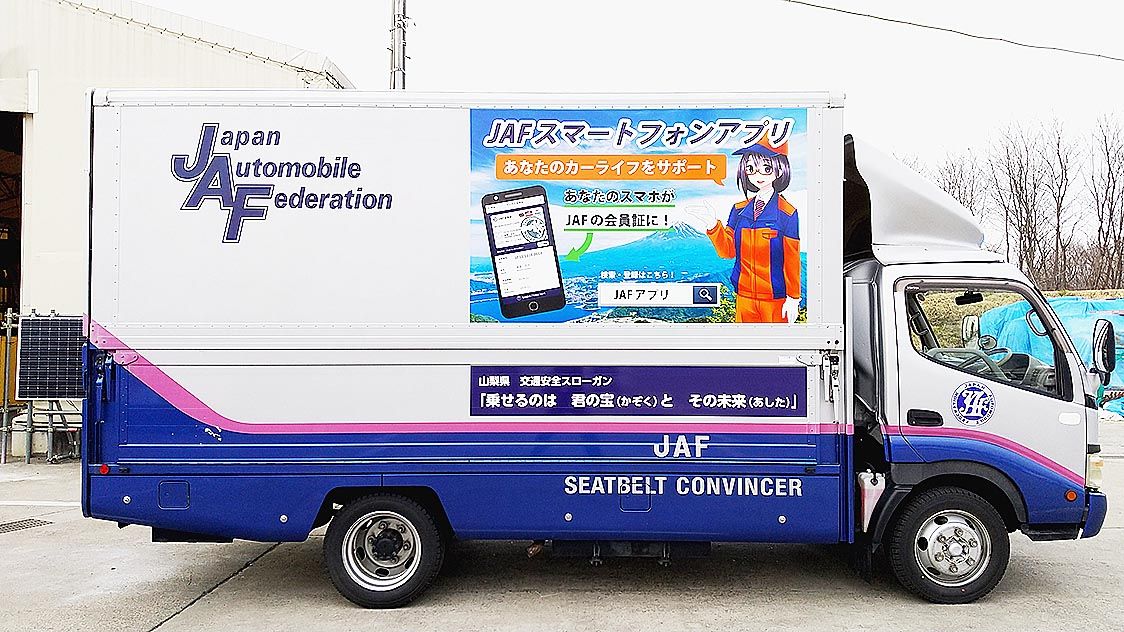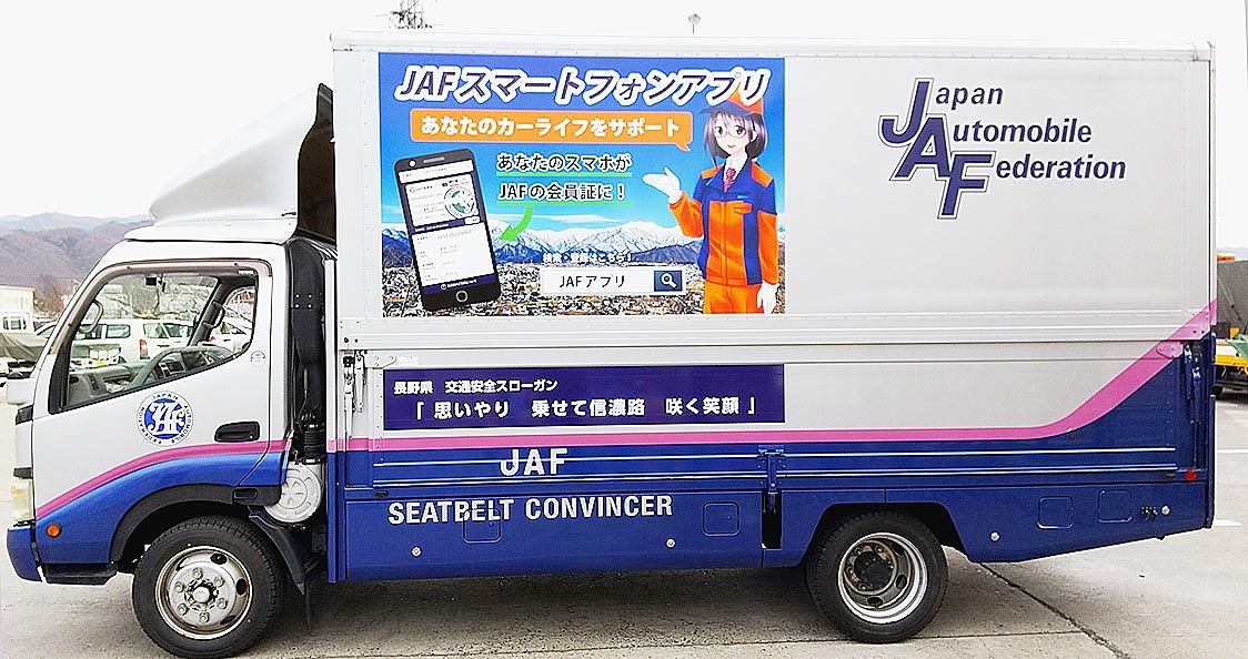 JAF長野と山梨 車体にスマホアプリをラッピング シートコンビンサーが運用開始