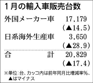 1月の輸入車登録、一昨年比で2割増