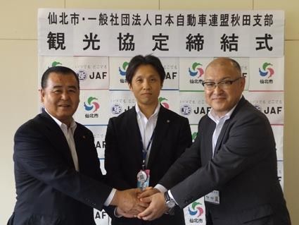 【秋田】日本自動車連盟(JAF)秋田支部(伊藤哲之支部長)は17日、仙北市(門脇光浩市長)と「観光振興に関する観光協定」を締結した。JAFがウェブ上で展開する「JAFナビ」や会員向けの月刊誌「JAFメイト」を通じ、観光情報を全国に向けて発...
