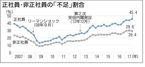帝国データバンク調査「正社員不足」45% 労働市場ひっ迫鮮明に