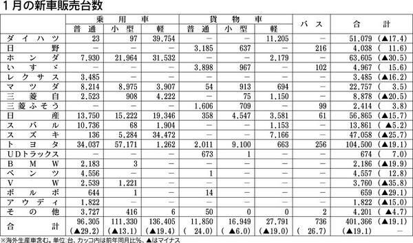 【1月の新車販売台数】