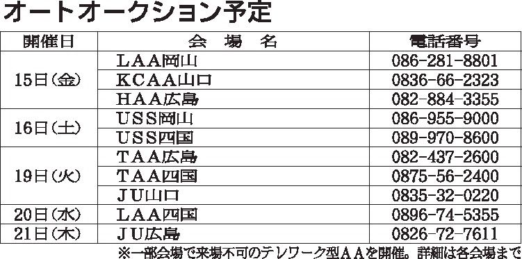 〈オートオークション予定〉