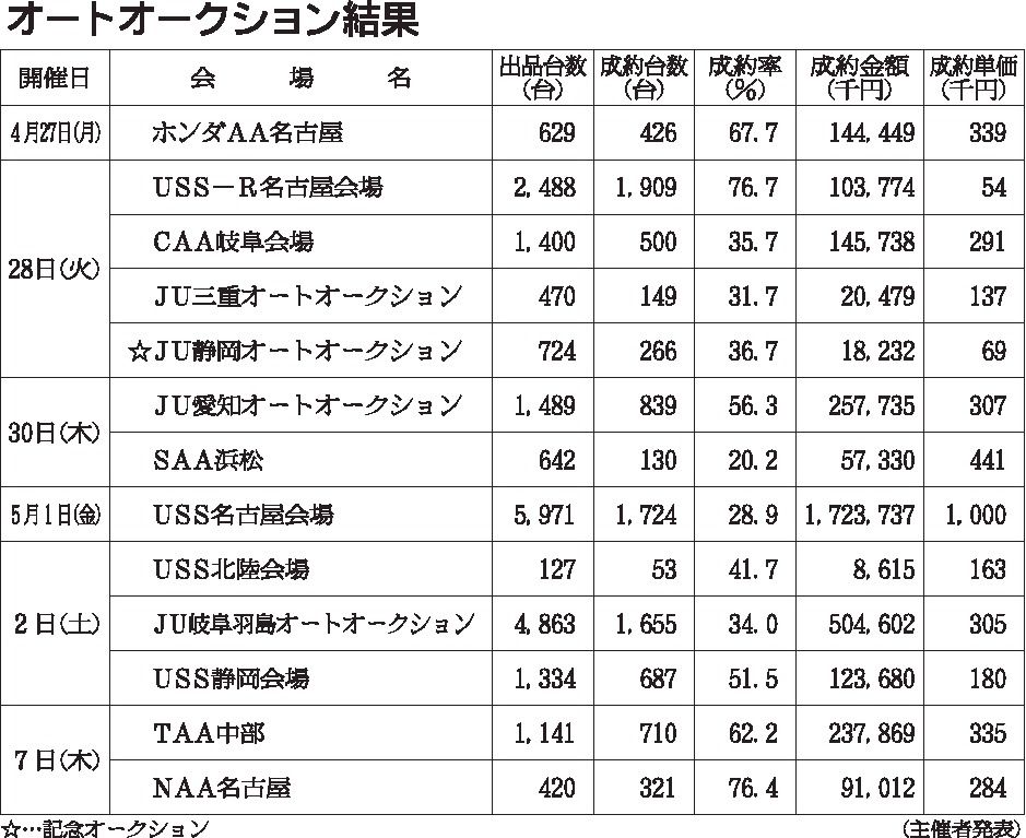 〈オートオークション結果〉