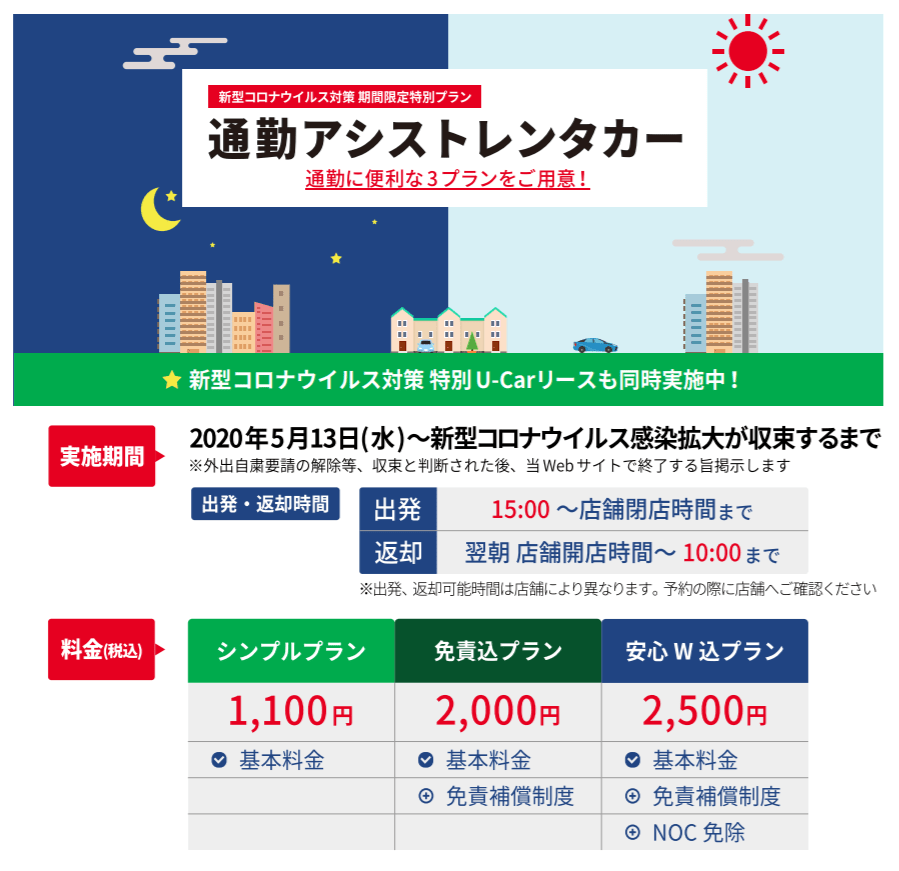 全国のトヨタレンタリース店のうち25法人でサービスを始めた。午後3時以降の出発、翌朝10時までの返却(対象時間帯は店舗により異なる)に限り、1100円(基本料金のみ)、2千円(基本料金プラス免責補償付帯)、2500円(基本料金、免責補償、ノンオペレーションチャージ免除)の各種料金で車両を貸し出す。