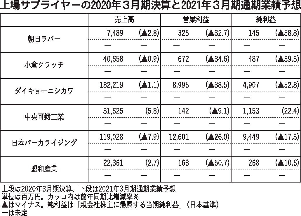 〈上場サプライヤーの2020年3月期決算と2021年3月期通期業績予想〉