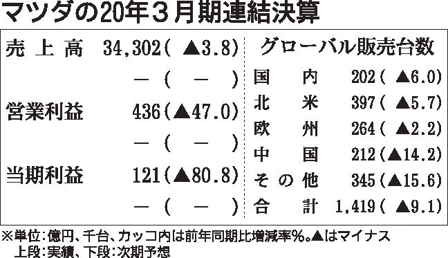マツダが14日に発表した2020年3月期の純利益は、前年度比80・8%減の121億3100万円だった。期初より続いた販売の落ち込みなどで業績は悪化していたが、コロナ禍が追い打ちをかけた。21年3月期の連結業績予想は合理的な算定が困難とし、...