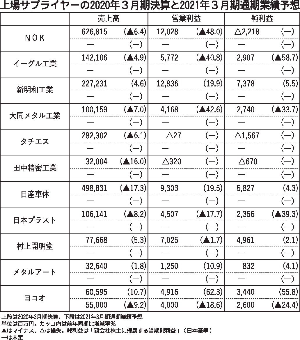 〈上場サプライヤーの2020年3月期決算と2021年3月期通期業績予測〉