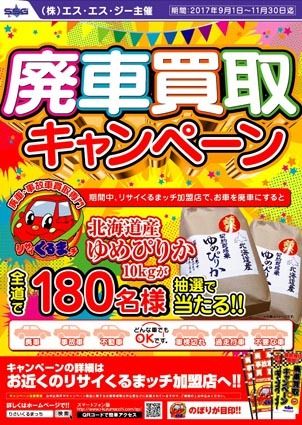道内リサイクル部品販売組織のエス・エス・ジー(SSG、大熊薫社長)は、1日から懸賞付き「廃車買取キャンペーン」を開始した。SSGの正会員35社が参加。会員店の店頭にポスターを掲示し、自動車リサイクル事業者の廃車買い取りをPRする。一般ユー...