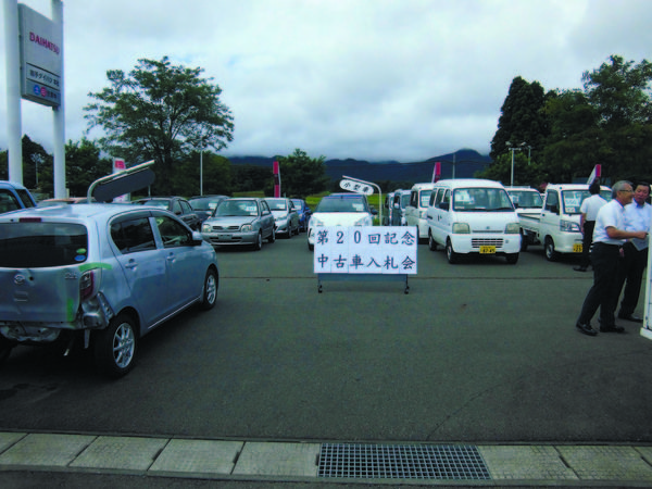 【盛岡】岩手ダイハツ(中田利光社長)は8月20日、本社隣りの法人グループ敷地内駐車場で「第20回記念中古車入札会」を開催した。当日は15社、事前入札には10社がそれぞれ参加した。 今年6回目の入札会で、これまでは参加者の利便性を考慮し、現...