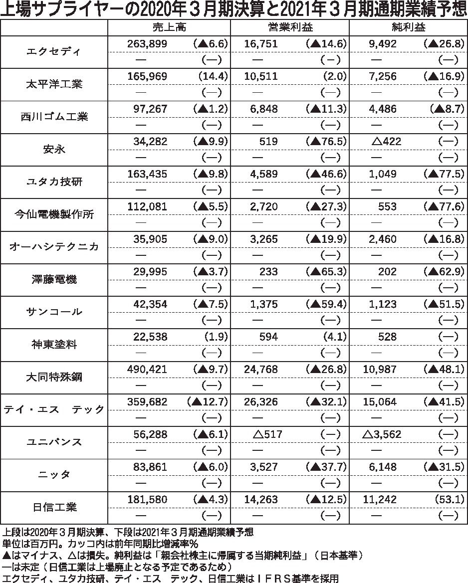 〈上場サプライヤーの2020年3月期決算と2021年3月期通期業績予想〉