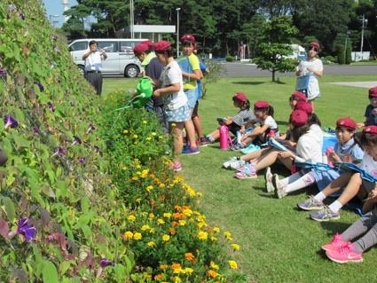 地元小学生らがアサガオ観賞 日産栃木工場