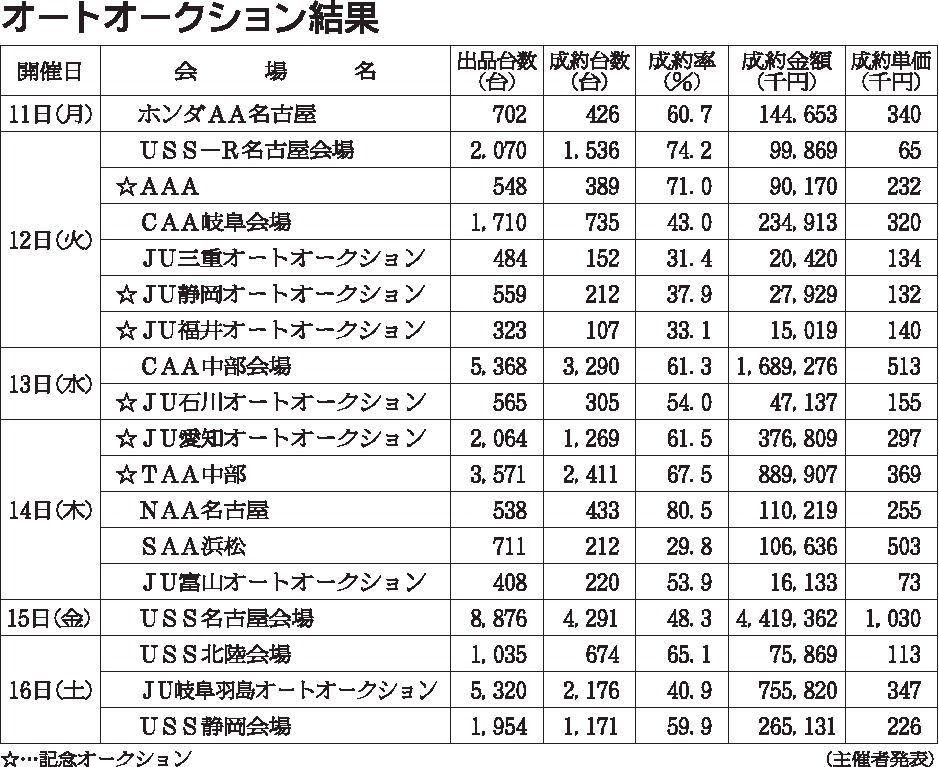 〈オートオークション結果〉
