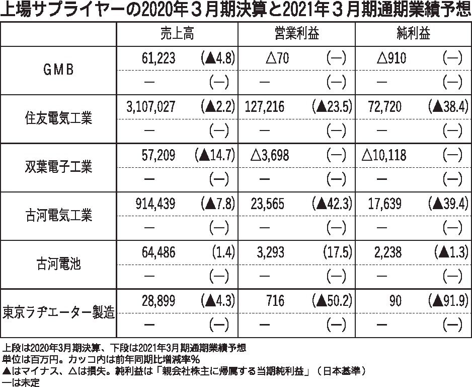 〈上場サプライヤーの2020年3月期決算と2021年3月期通期業績予想〉