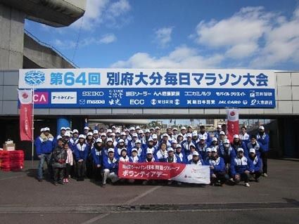【大分】AIRオートクラブ大分支部(今川哲安輝支部長)はこのほど、損保ジャパン日本興亜のプロ代理店組織JSA中核会大分支部、かぼす会、損保ジャパン日本興亜ひまわり生命、損保ジャパン日本興亜の合同で「第64回別府大分毎日マラソン大会」にボラ...